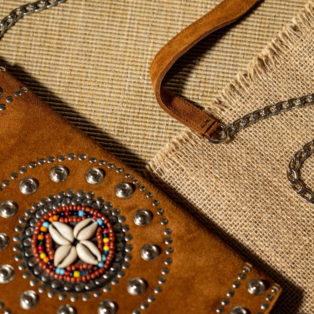 The Fever Fringe bag by Ariluna is more than just an accessory, it's a true statement of style. Entirely handmade, this shoulder bag blends the elegance of premium suede with sophisticated ethnic details, evoking desert atmospheres and international festivals.