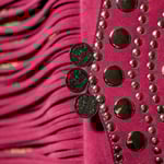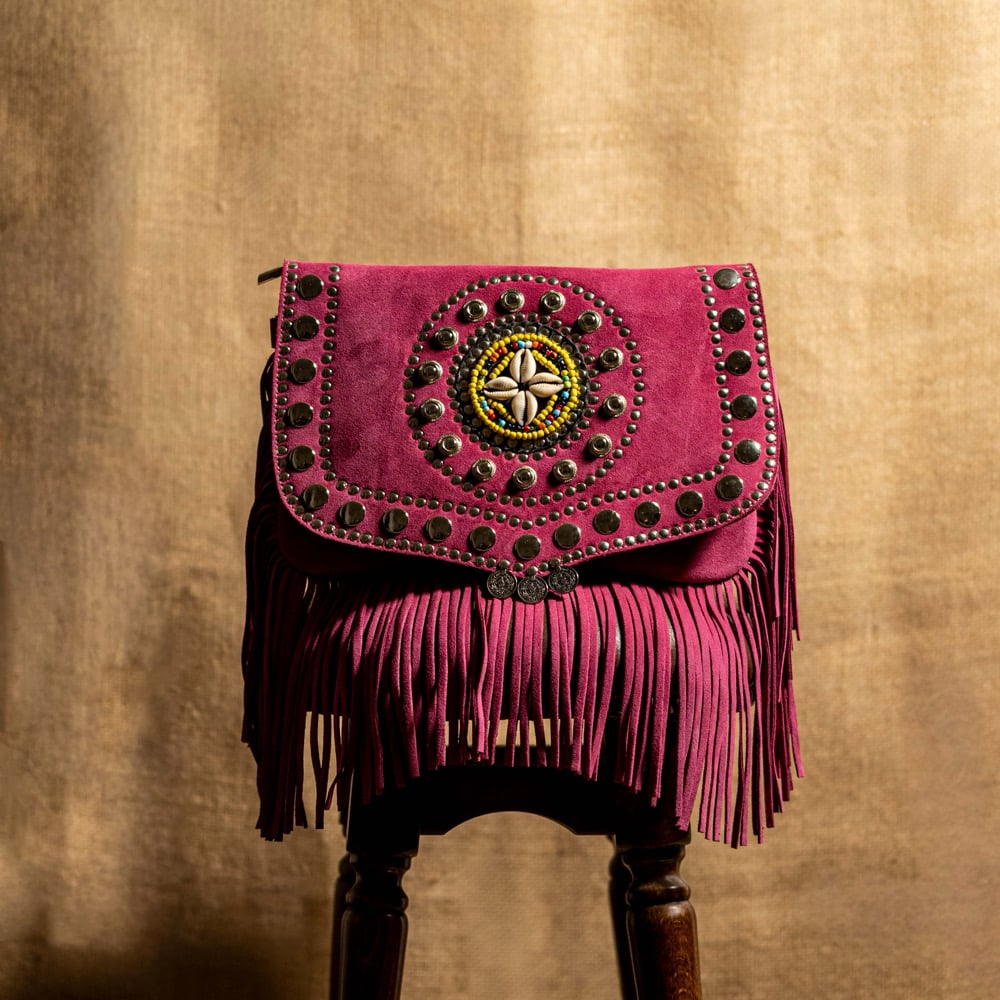 Elevate your style with the Ariluna Rainbow Fringe bag, an accessory that blends the free spirit of bohemian design with exquisite craftsmanship. Crafted from premium suede in a vibrant magenta hue, this bag is designed for those who want to turn heads.